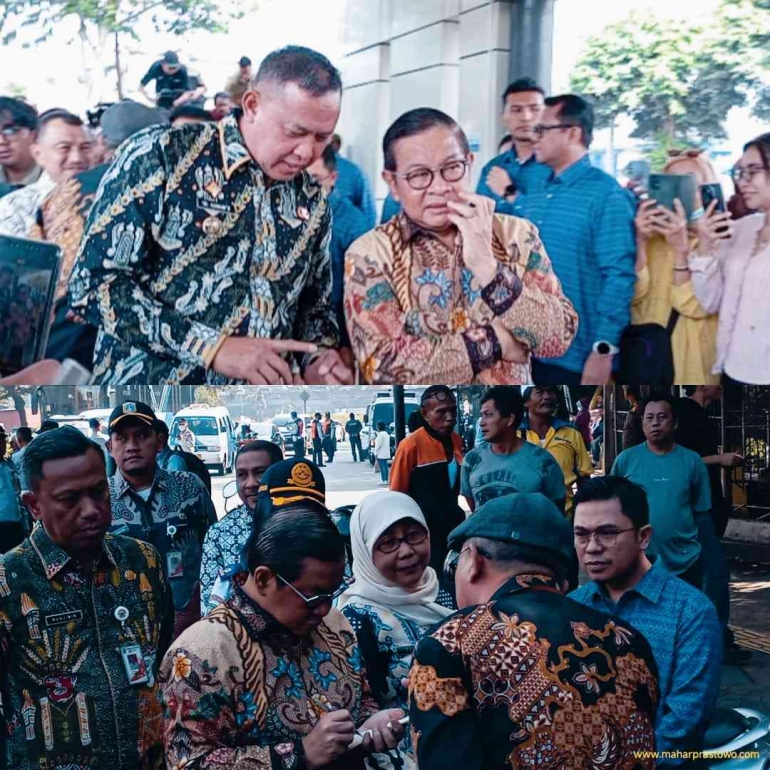 Pramono Anung, Gubernur Daerah Khusus Jakarta, di depan terowongan UKI langsung disambut Wali Kota Jakarta Timur Munjirin, yang belum genap sepekan menjabat, usai sebelumnya menjabat di Jakarta Selatan. Forkopimkot lengkap. Dari Polres, Kodim, hingga Camat Makasar dan Kramat Jati hadir, beserta jajaran lurah, kasi, dan Satpol PP.